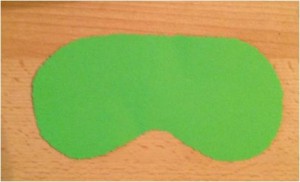 zwei verschiedenen Farben die Form einer Schlafbrille auf das Papier gemalt und ausgeschnitten. Dabei muss eine Schlafbrille etwas kleiner sein als die andere.