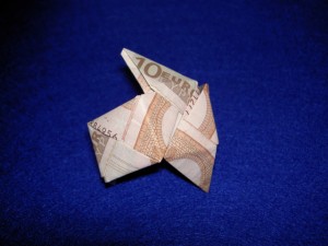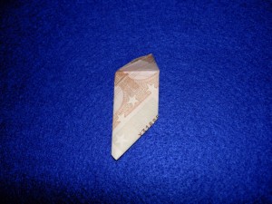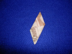 Schließlich hast Du alle sechs Geldschein-Rauten ineinander gesteckt. Für die letzten beiden Spitzen brauchst Du vielleicht etwas Geduld.